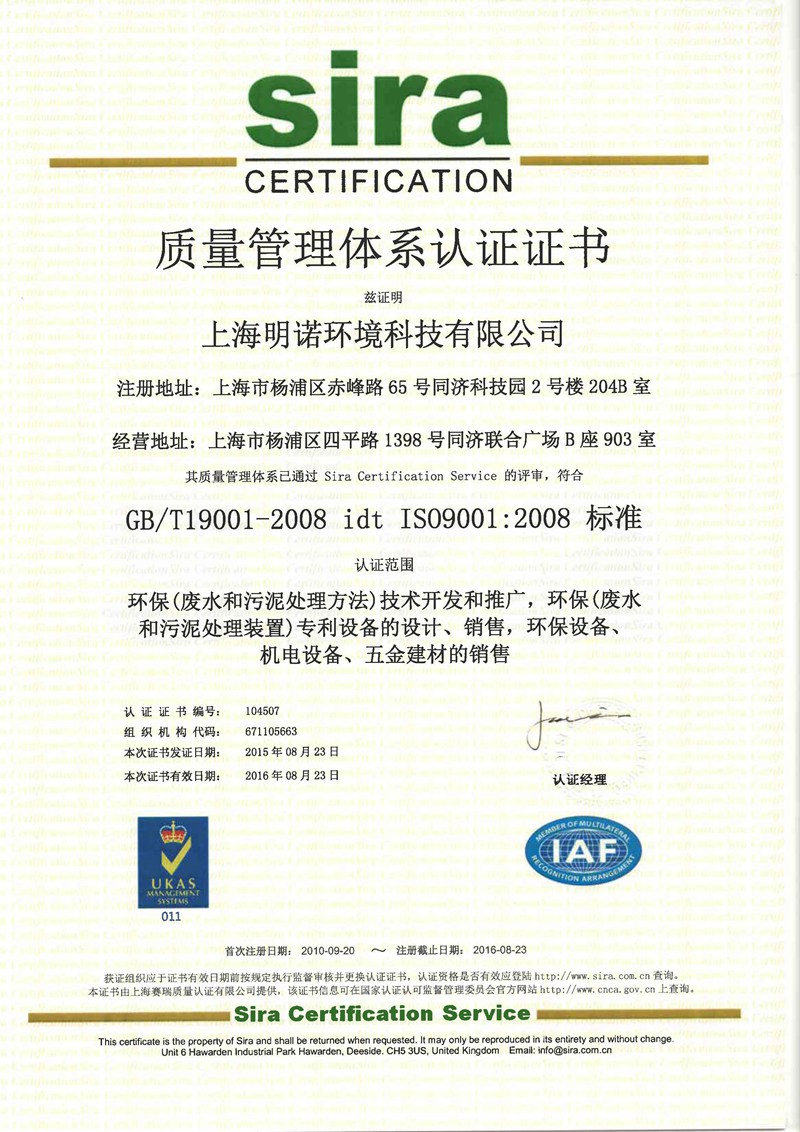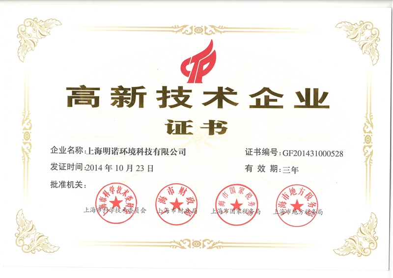 明諾環(huán)境被認(rèn)定為“國家級高新技術(shù)企業(yè)”,并受到國家科技部創(chuàng)新基金支持。公司已經(jīng)通過ISO9001:2008質(zhì)量管理體系認(rèn)證和ISO14001:2004環(huán)境管理體系認(rèn)證。
