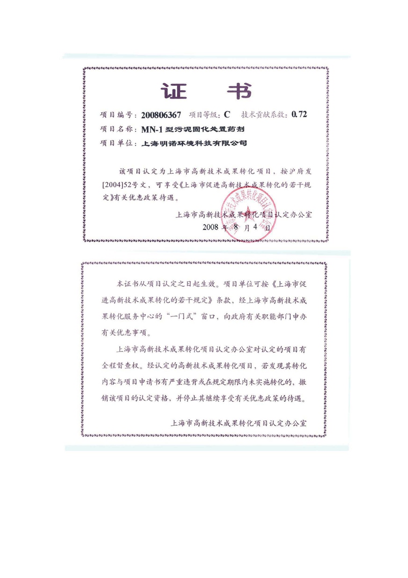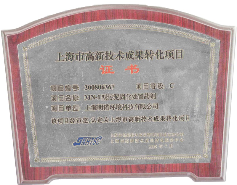 上海市高新技術(shù)成果轉(zhuǎn)化項(xiàng)目證書