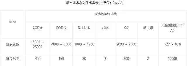 根據(jù)項目所在地受納水體功能及當(dāng)?shù)丨h(huán)保部門要求,廢水經(jīng)治理后要求出水水質(zhì)達(dá)到《畜禽養(yǎng)殖業(yè)污染物排放標(biāo)準(zhǔn)》(GB18596-2001)標(biāo)準(zhǔn)要求,廢水中污染物及其濃度和排放要求如下: