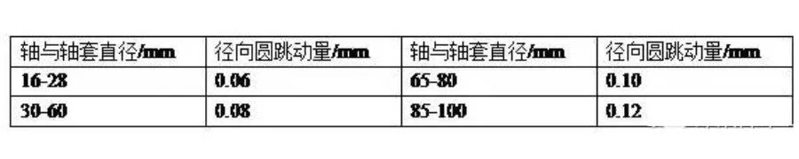 答:測量復查滑動軸承軸徑的橢圓度和錐度應符合技術要求,一般不得大于直徑的千分之一。滾動軸承的軸徑的橢圓度和錐度不大于0.05mm。