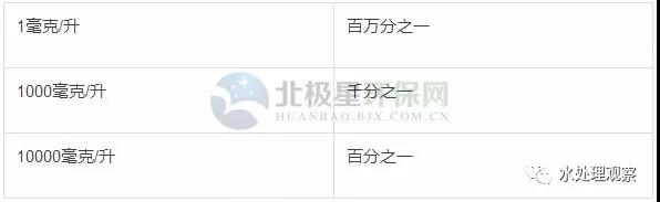 一般來說,廢水中的有機(jī)物質(zhì)和無機(jī)物質(zhì)的含量是很小很小的,如果用百分濃度或其他濃度來表示則太麻煩太不方便了,譬如一噸廢水中往往只有幾克、幾十克、幾百克甚至幾千克污染物質(zhì),其單位即為克/噸(g/T),如將噸換算成升即為毫克/升(mg/L)。計算時可參考下表換算: