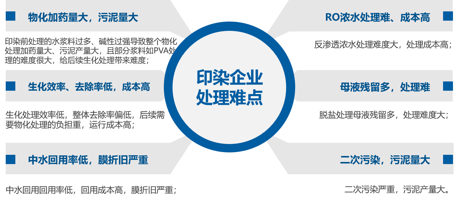 印染廢水普遍具有水量大、水質(zhì)成分復雜、堿性強、COD濃度高、色度高的特點,而且國家對印染行業(yè)的排量控制趨嚴甚至部分省份提出了控鹽排放的要求。